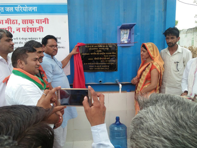 In Rajasthan total 22254 habitations are quality affected (as on 1-4-15) out of which 7056 habitations are fluoride affected 13814 habitations are salinity affected.1370 are nitrate affected and 14 are iron affected. To provide potable water to these habitations is top priority of state government. As providing water through sustainable surface sources particulary in Rajasthan is a time taking solution therefore state government has planned to give interim relief to these quality affected habinations by providing potable water through installation of community water purification plants based on Reverse Osmosis (RO) technology by treating the in-site ground water. The scheme is being implemented in pahsed manner, where approx 1000 RO plants have been installed in 13-14 and another 1000 plants under implementation in 16-17. Orders have been issued for 1000 plants in 2017-18 for which work will commence shortly.